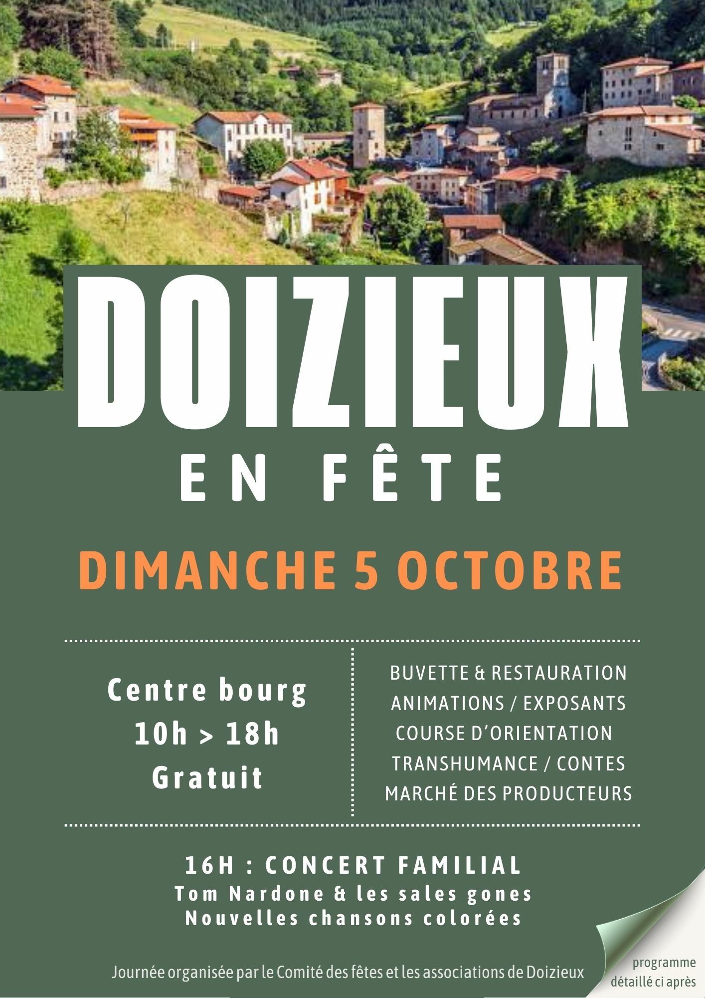 Doizieux en Fête Dimanche 5 octobre 2025 Centre Bourg de 10h à 18h. Journée organisée par le Comité des Fêtes et les associations de Doizieux |
